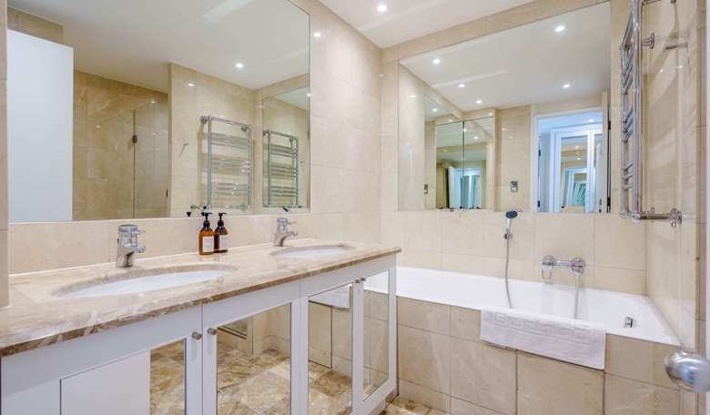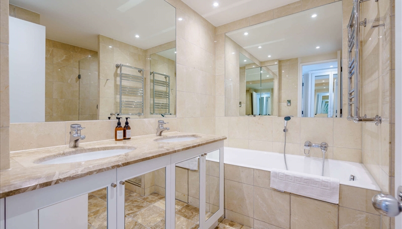 • Primary bedroom with marble en-suite bathroom and bespoke mirrored wardrobes