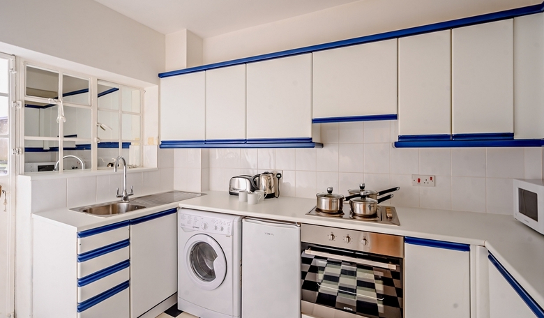 The apartment comprises a good-sized reception/dining room, two double bedrooms, a separate kitchen, one bathroom, and a guest WC, with ample storage space throughout. The property is available furnished or unfurnished, providing flexibility for tenants.