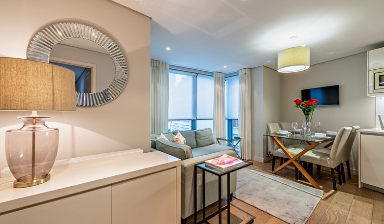 This spacious interior designed three bedroom apartment is set within a modern block in the sought after Paddington Basin in W2.